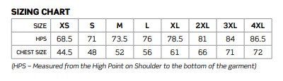 | Half Chest (cm) | 59 | 61 | 63 | 65 | 67 | 69 | 71 | 73 | 75 | 77 |
